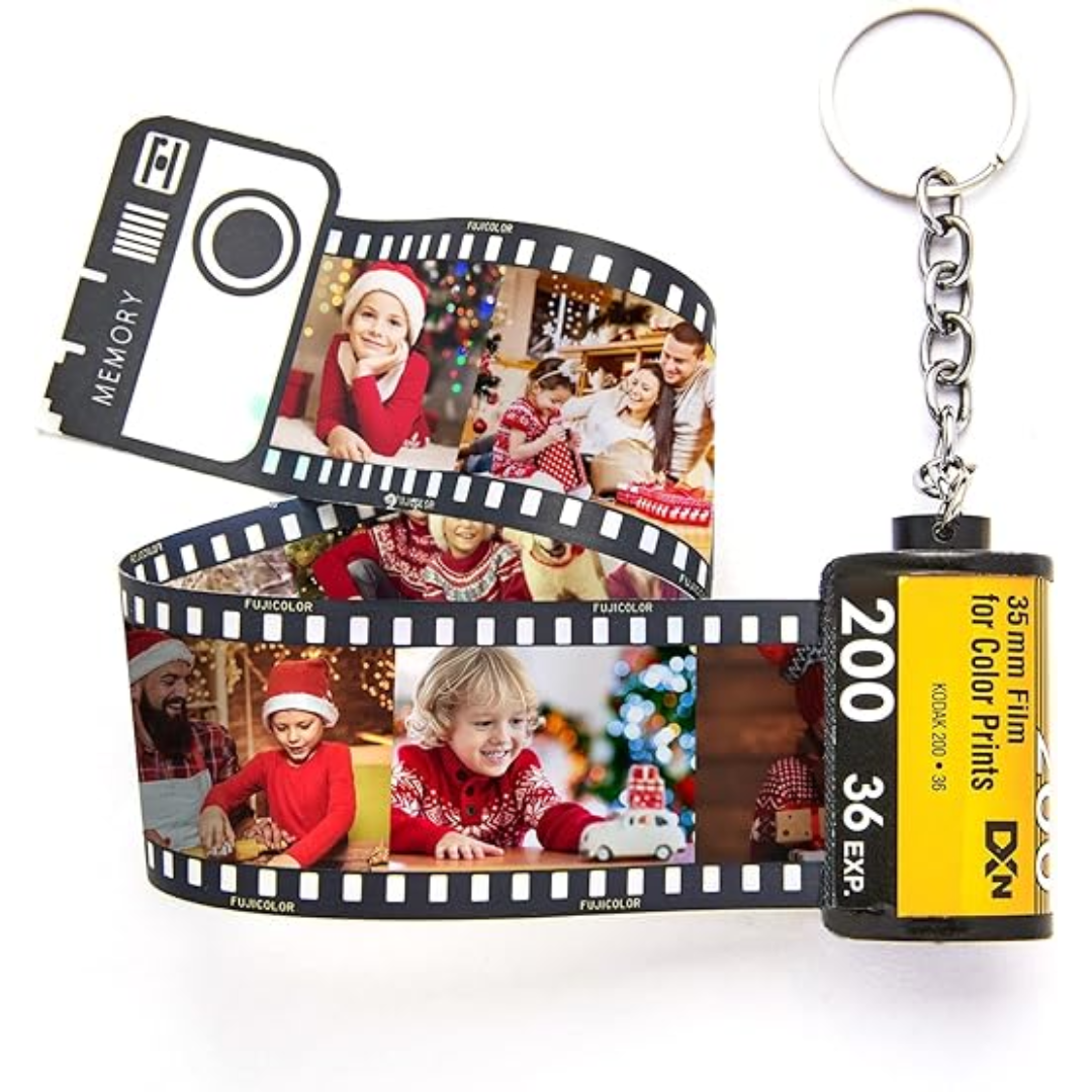 ¡Es muy sencillo! El llavero cuenta con una pequeña perilla giratoria en la parte superior del carrete. Solo tienes que girarla manualmente para que la tira de fotos se enrolle de nuevo de forma segura dentro de la cápsula.